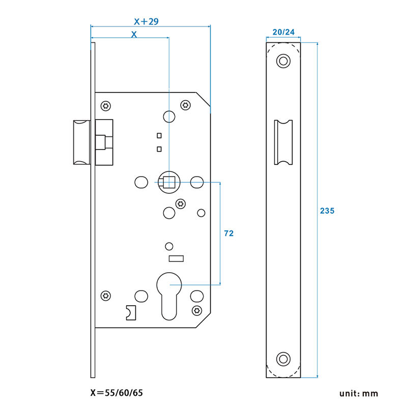 Flexible Compatibility: Reversible latch suitable for both left- and right-handed doors. Compatible with standard European lever handles. Available in multiple models and backset distances options, with OEM customization supported.