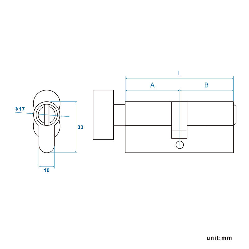 Functional Design: The toilet profile cylinder features a single-sided operating structure that can be operated knob on the one side, while the other side features an emergency release slot that can be opened from outside with a coin or screwdriver. It is designed with a 15 mm cam rotation radius to provide smooth and effortless turning.